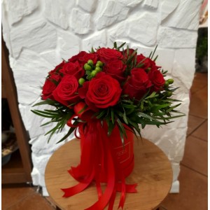 Piękny box ze świeżych  róż z delikatnymi dodatkami  od Kwiaciarnia Kalina