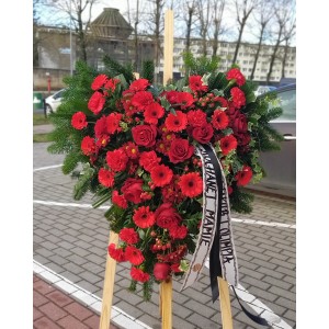 Ostateczny symbol łaski, miłości i podziwu, wieniec pogrzebowy w kształcie serca w czerwonym kolorze...